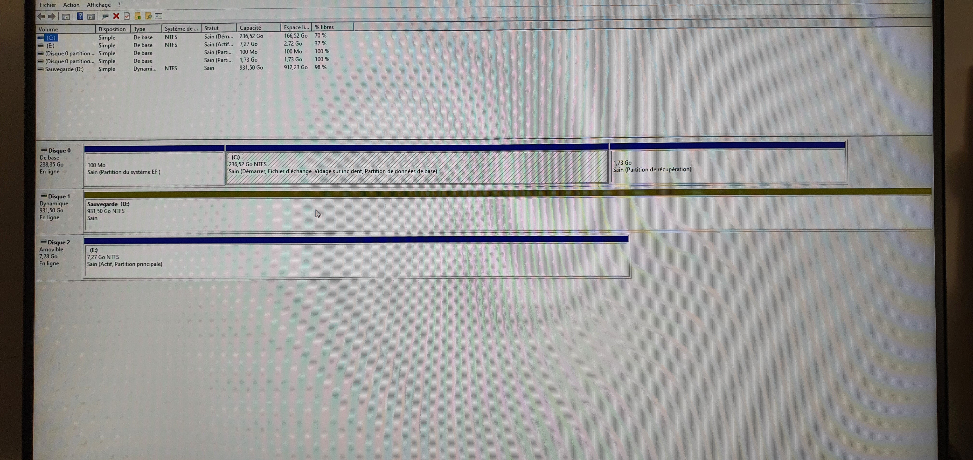 Il apparait bien en faisant la manipulation que vous avez demandé : Disque 1 mais pas dans “Ce Pc”. Je n’ai pas trouvé comment le formater